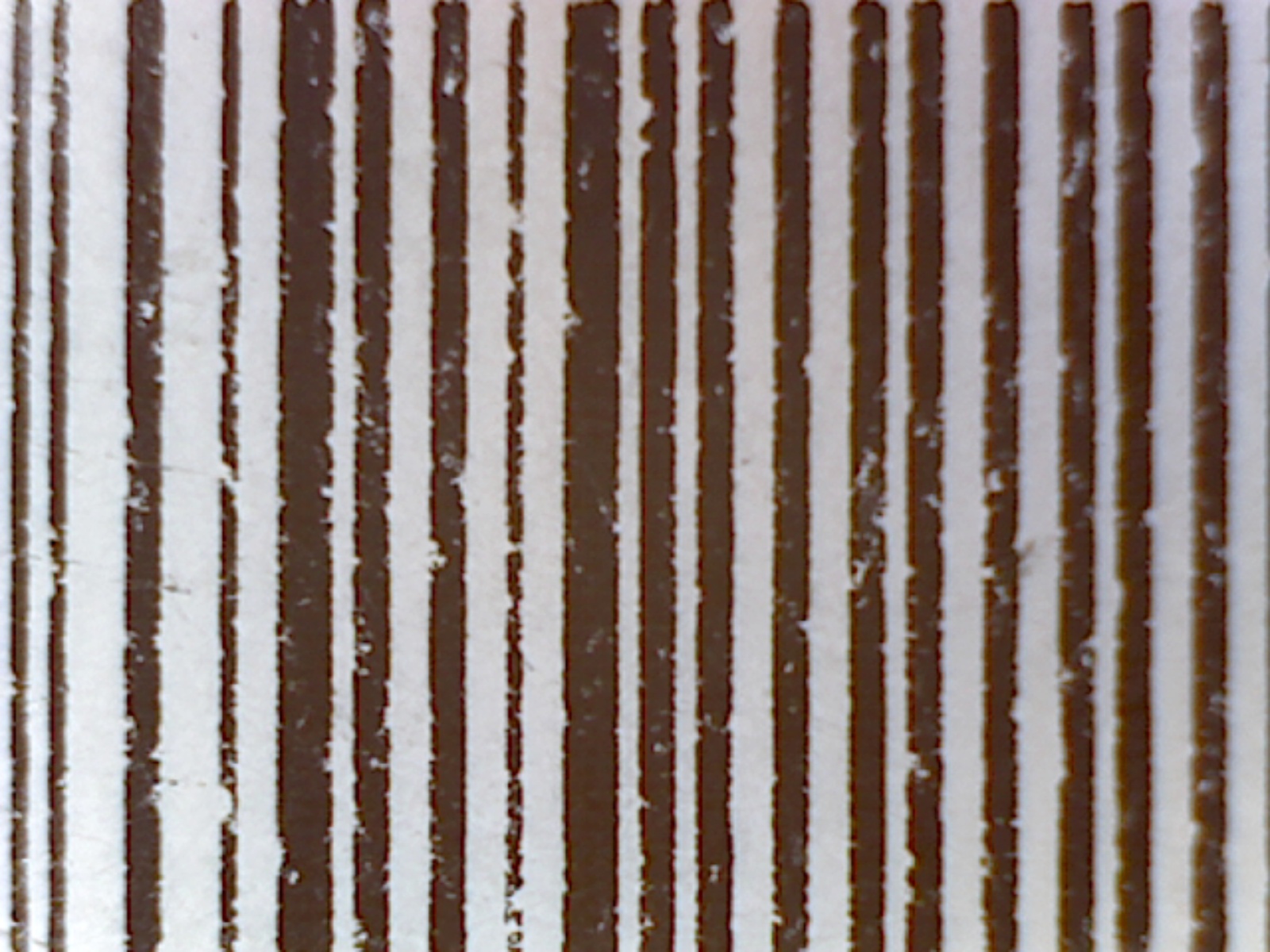 If the barcode is an inch or more wide, readability can suffer from inaccurate printing. Looking at that same UPC symbol, those leading and trailing bars should have an equally wide space between them. If that space is smaller than its flanking bars, the scanner may not be able to see it.