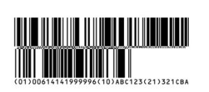 GS1-128: Though complex with three character sets, all share a common stop pattern of wide bars flanking a narrow bar-space-bar.