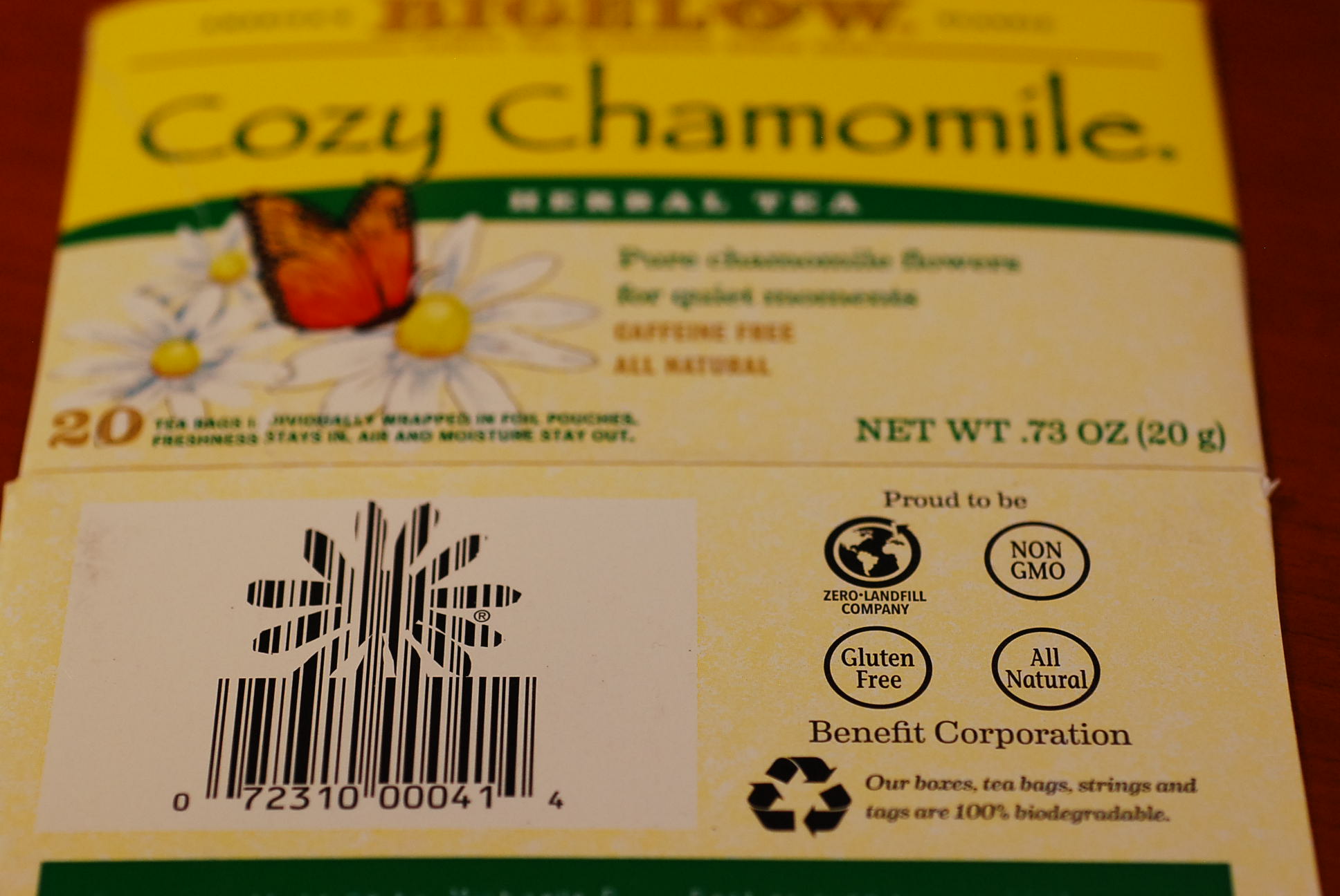 On the left, the barcode cleverly emulates the golden blossom of the chamomile flower