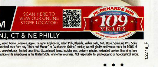 On the left, the QR Code in this advertisement looks sleek and horizontal. Unfortunately it should look square and fails the ANU parameter for Axial Nonuniformity.