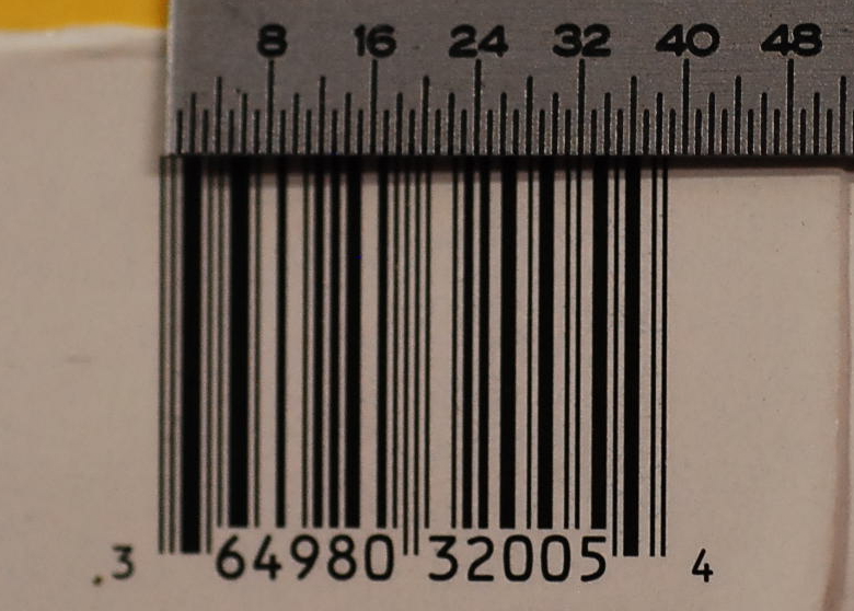 It is remarkably well printed considering the very small X dimension–about .0066″. Printing a barcode this small challenges the printer as well as the  scanner. It is difficult to reproduce many thousands of these images successfully when the tolerances are so small–but even if you do, those perfectly reproduced, very small x dimensions may not be readable with the scanner. A pity since this product package has plenty of room for a larger, compliant symbol.